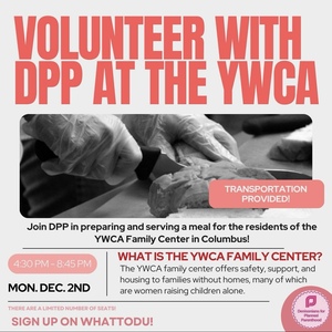 The YWCA Family Center offers safety, support, and housing to families without homes, many of which are women raising children alone. Join DPP in preparing a meal for the residents of the YWCA Family Center in Columbus!